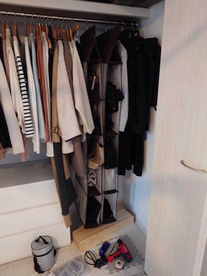 クローゼット内でのカバン収納に悩んでいたのでクローゼット内に可動棚を設置しました。