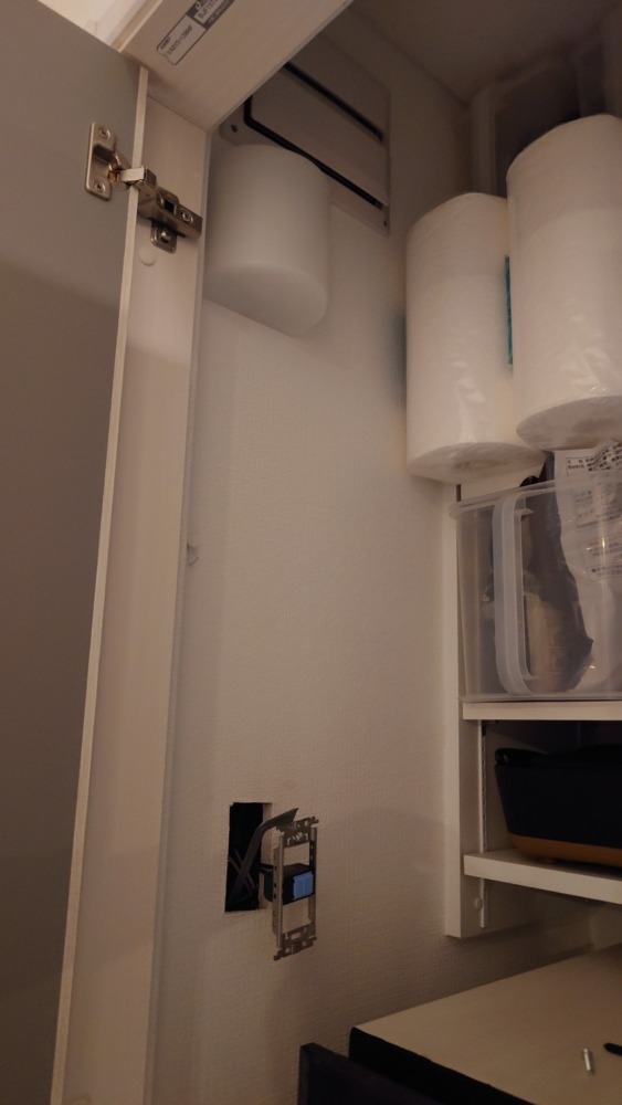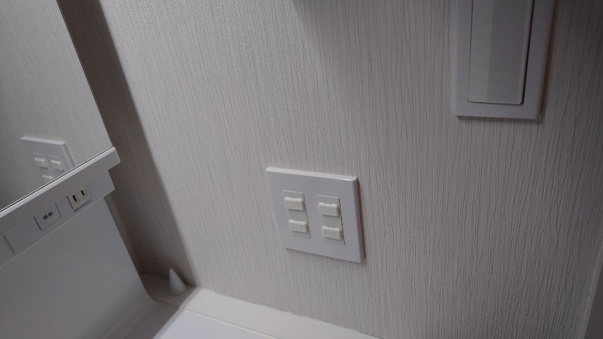 壁を挟んだ洗面所にコンセントがあるのでそこから電源を取ることにします。