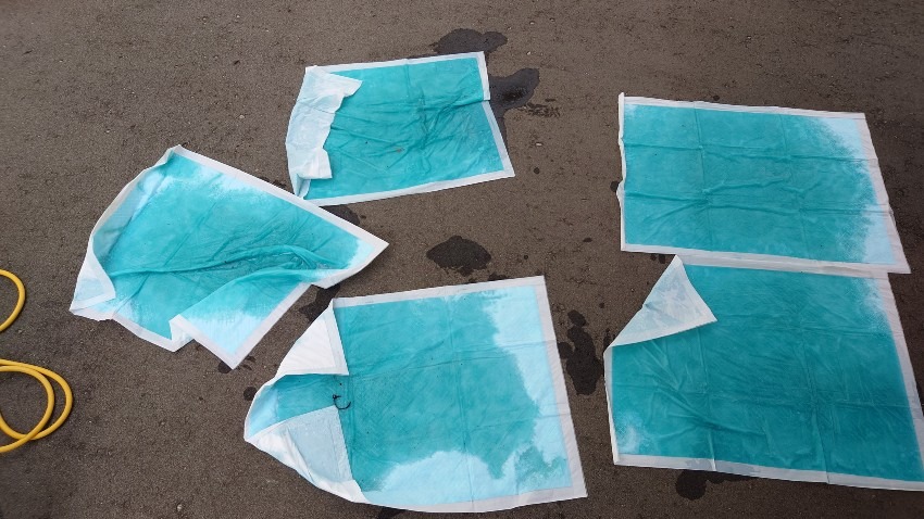 抜いたクーラントはペットシートに染み込ませて廃棄。