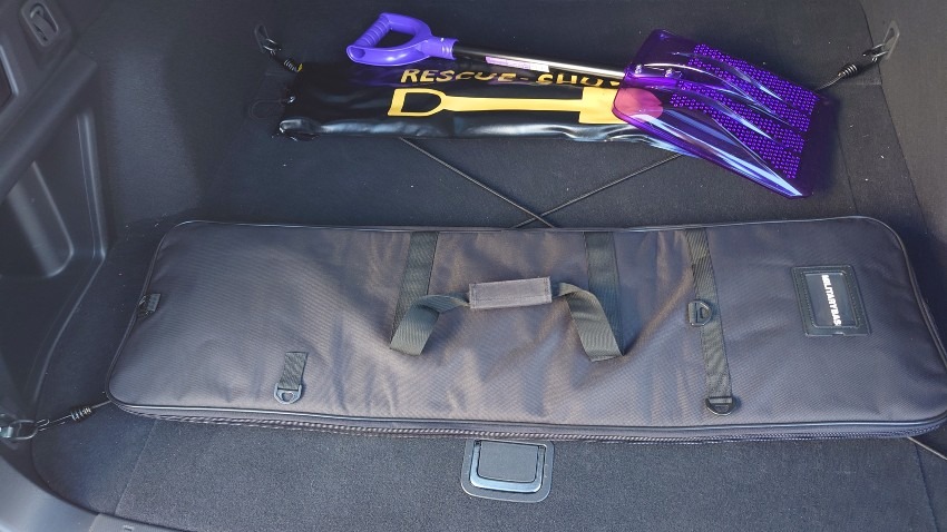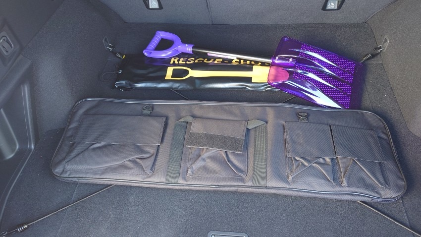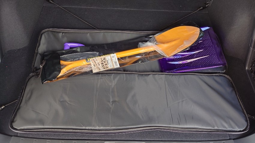 万が一に備えて車載用にスコップを買ったのですがトランクにそのまま置くのは邪魔だし暴れると嫌なのでDIYって事ではありませんが収納を考えました☝️