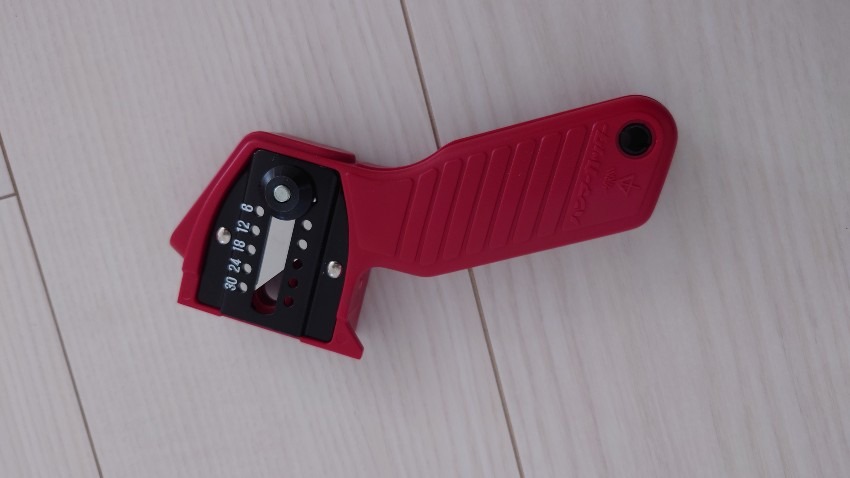 石膏ボードの厚みに合わせて刃をセットしハンマーで叩く事でカットしていきます。