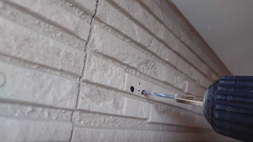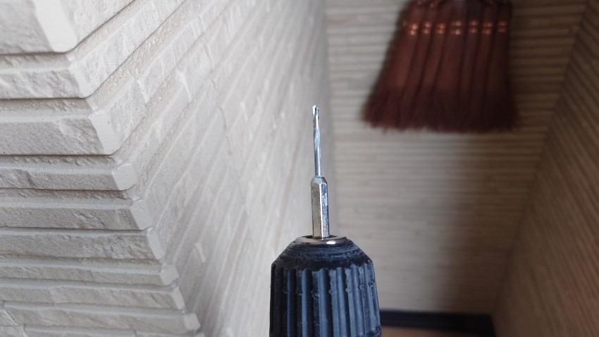 外壁に穴を空けるのは少し躊躇いましたがここは風除室内なので大丈夫!と自分に言い聞かせて穴あけ。
