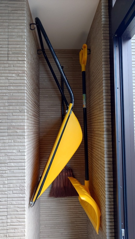 さらに利便性を追求しほうき掛けとスコップ掛けを取付しました!