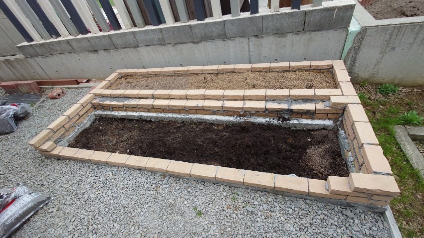 家の裏側に家庭菜園用の花壇を造りました。