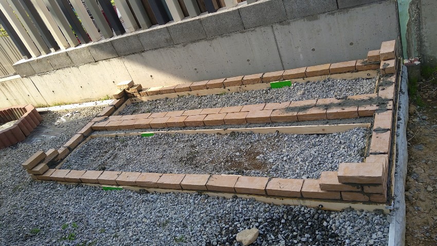 レンガは3段にする予定なので角だけ3段積んでおきました。