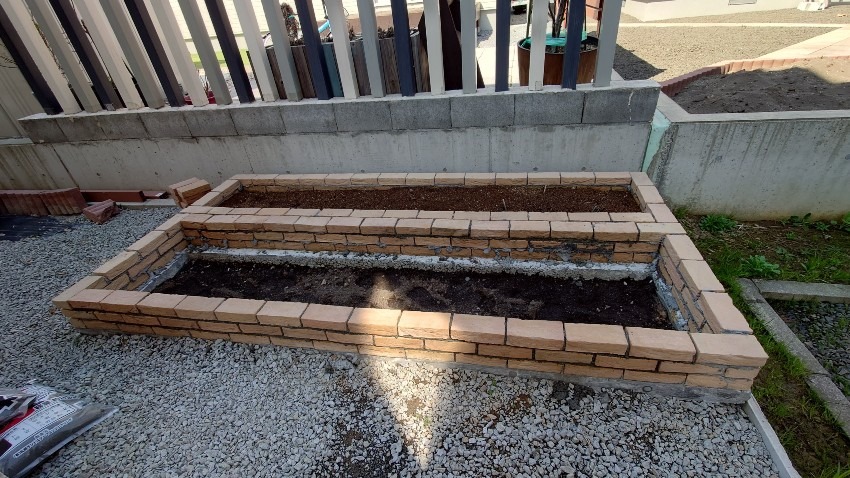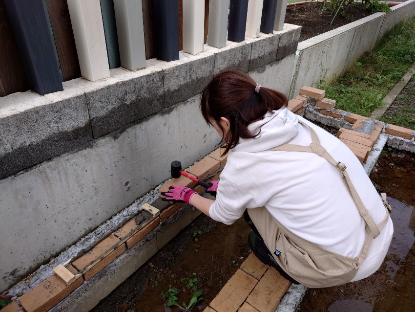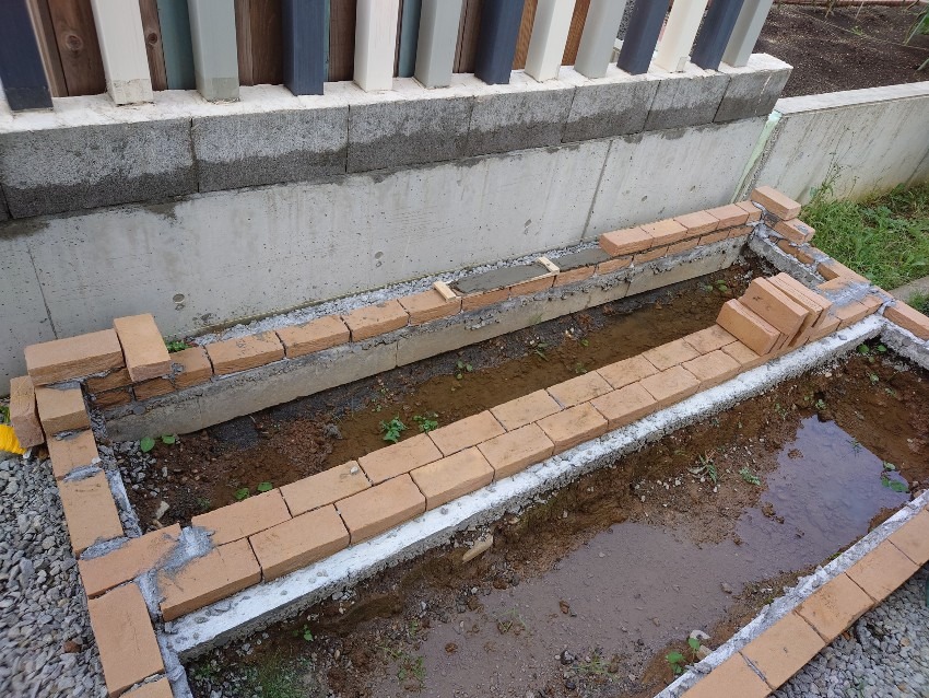 一回で全部は終わらないので数回に別けてレンガを積んでいきました。