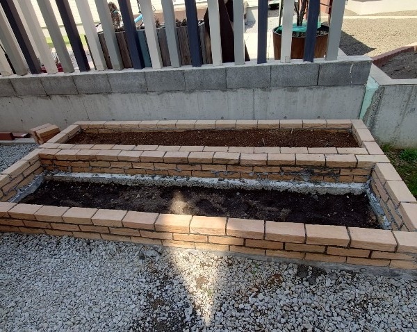 家の裏側に家庭菜園用の花壇を造りました。