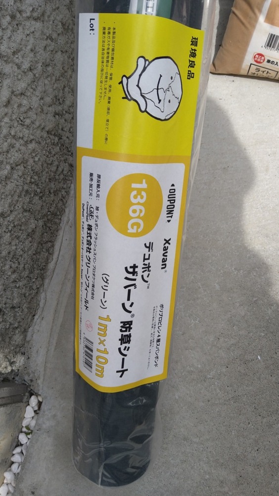 はじめに敷いたのは安物の防草シートで、これは少し高価な防草シートです。