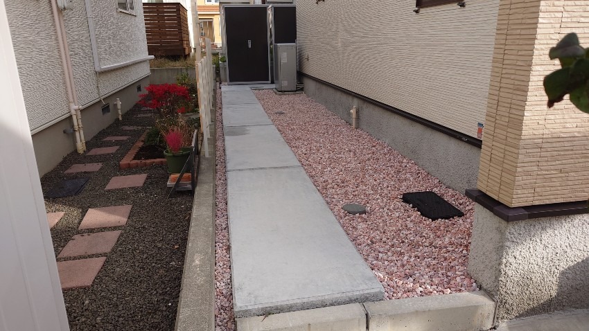 犬走りの雑草対策と裏の物置からジャッキやタイヤの出し入れをしやすい様に舗装する事にしました。